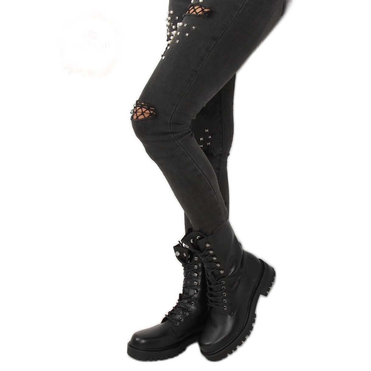 Szczegóły: Botki militarne sznurowane czarne NC1092 Black
