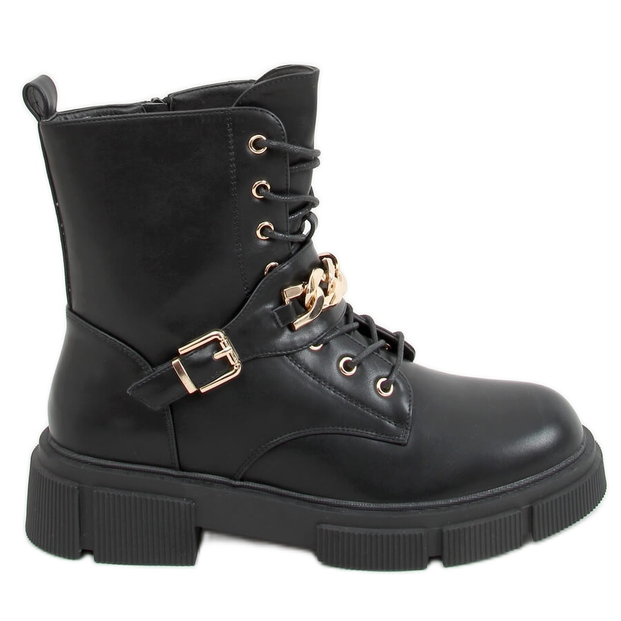 Szczegóły: Botki militarne z łańcuszkiem Atlantis PU/BLACK czarne
