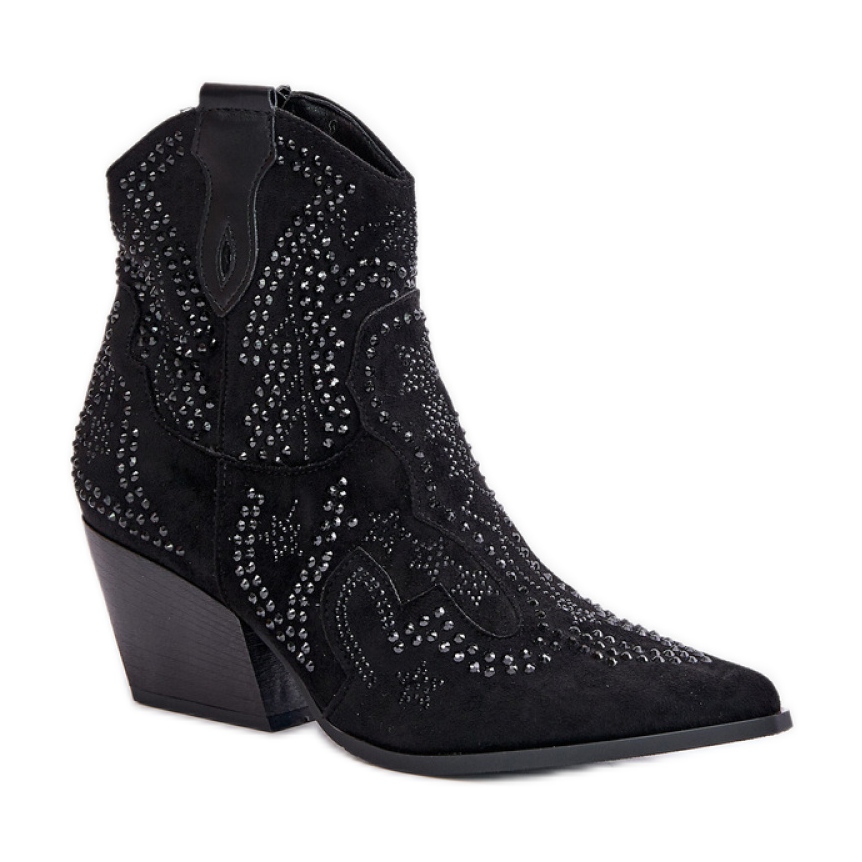 Odkryj wyjątkowy styl z botkami Model Kaivina 9676A Black od Step in style! Te eleganckie botki w stylu kowbojek łączą w sobie modny design oraz komfort noszenia. Wykonane z wysokiej jakości ekologicznego zamszu, prezentują się zjawiskowo dzięki unikalnemu zdobieniu, które przyciąga uwagę i dodaje charakteru każdej stylizacji.