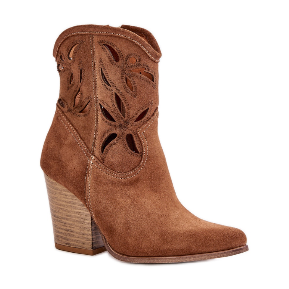 Botki Model Lewski 3612 Brown - Step in style to doskonały wybór dla każdej kobiety, która pragnie połączyć wygodę z elegancją. Wykonane z wysokiej jakości naturalnej skóry zamszowej, emanują nie tylko stylem, ale również trwałością. Ażurowy wzorek nadaje im unikalnego charakteru, dzięki czemu z łatwością dopasujesz je do wielu codziennych oraz wieczorowych stylizacji.