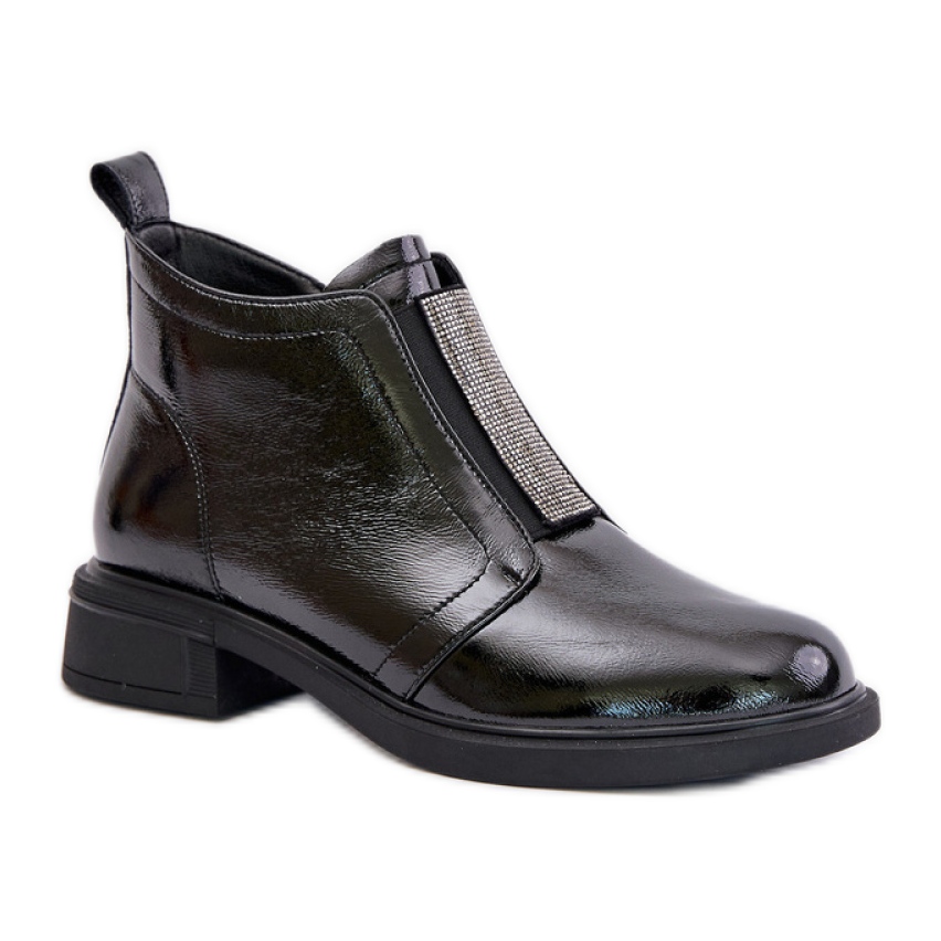 Botki Model MR880-142 Black to elegancka propozycja dla kobiet, które cenią sobie styl i komfort. Wykonane z wysokiej jakości naturalnej skóry, te czarne botki idealnie sprawdzą się w chłodniejsze dni. Dzięki płaskiemu obcasowi, o wysokości 3.5 cm, noszenie ich jest niezwykle wygodne, co czyni je doskonałym wyborem zarówno do codziennych, jak i eleganckich stylizacji.