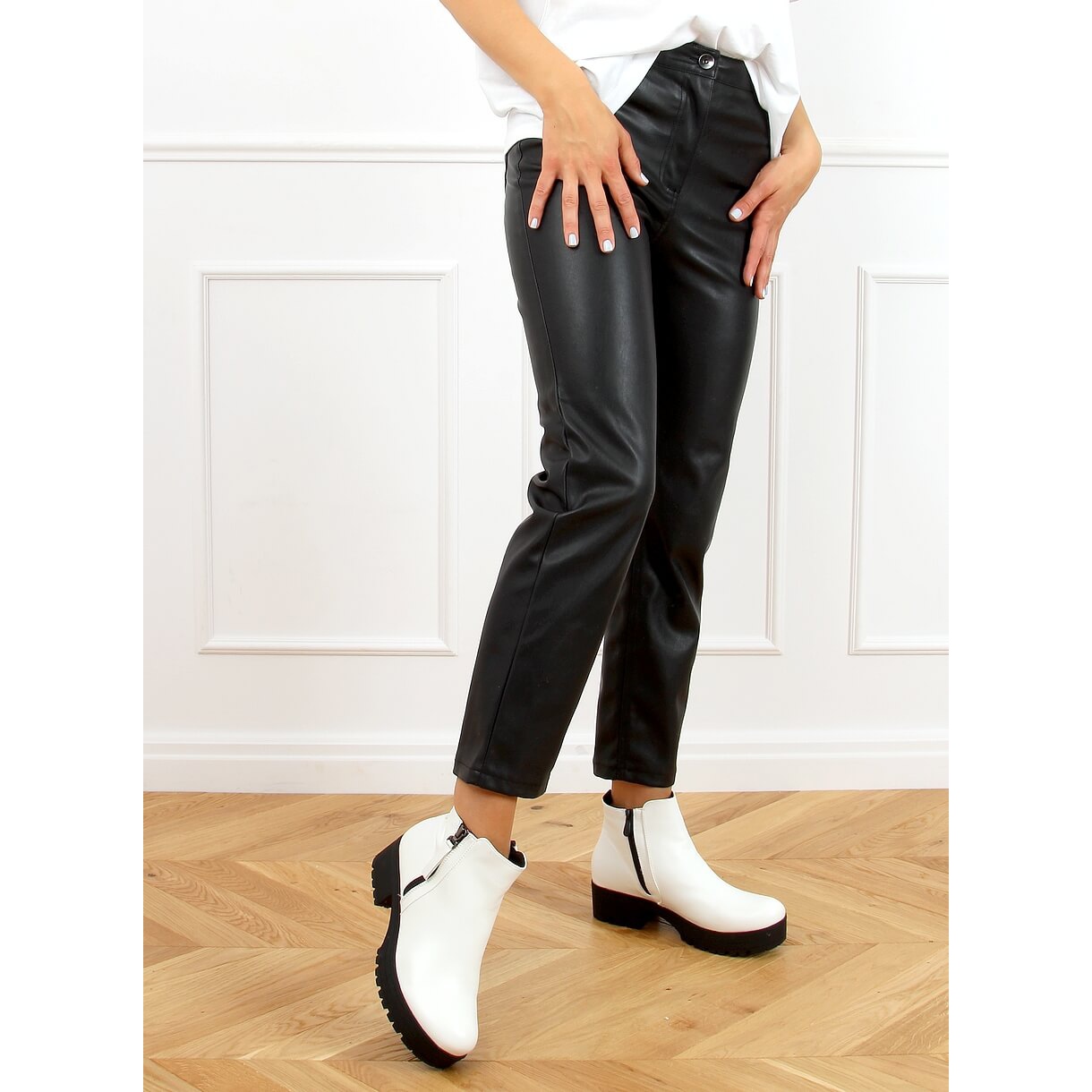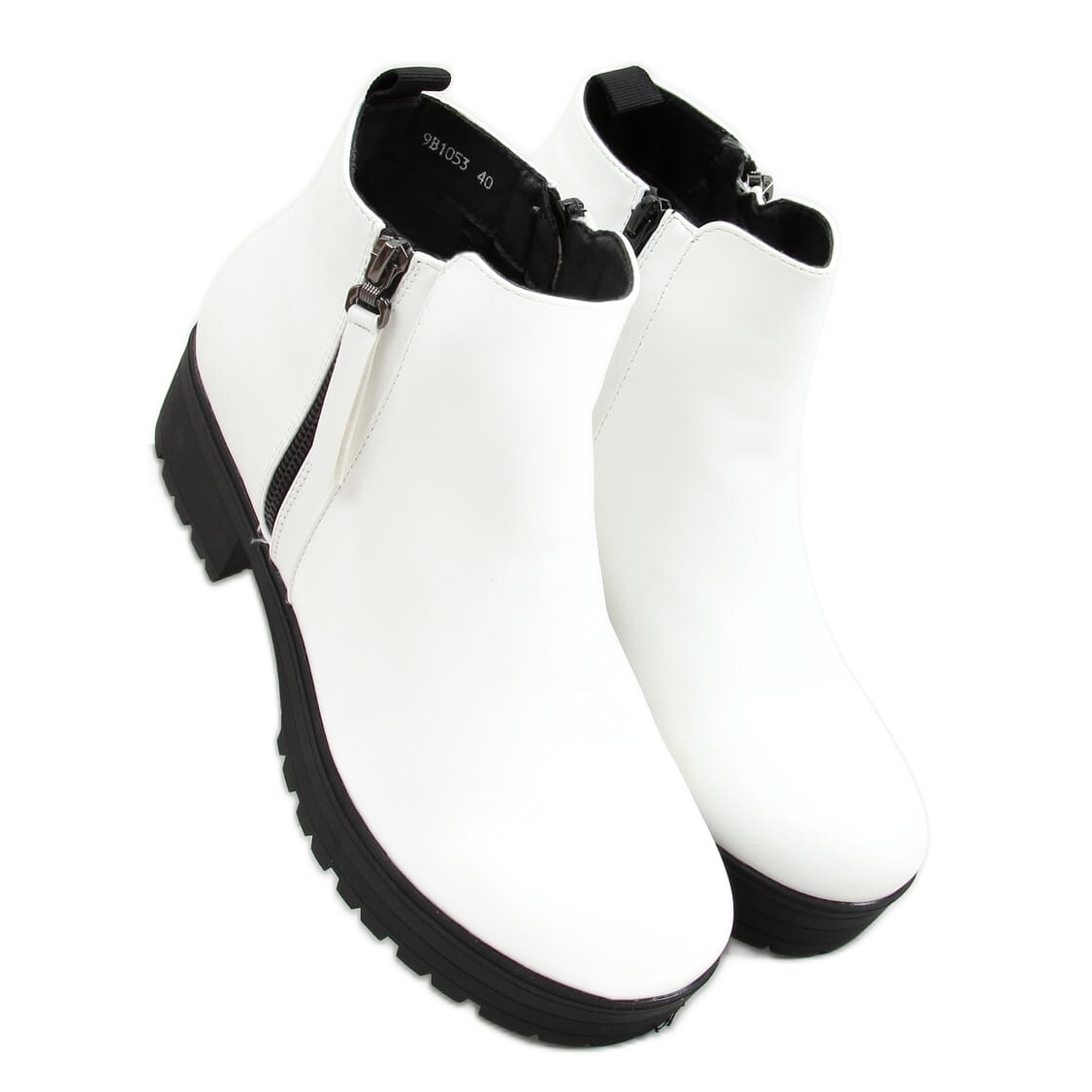 Szczegóły: Botki na grubej podeszwie białe 9B1053 White