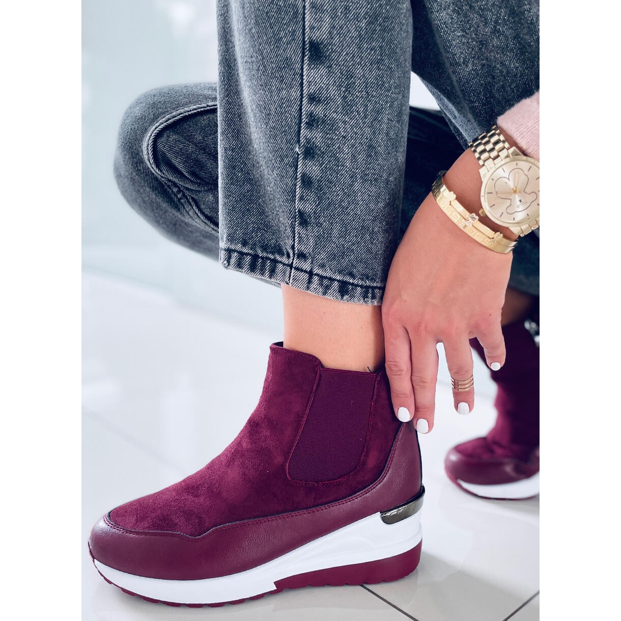 Odkryj niezastąpione botki na koturnie Byers Burdeos w kolorze czerwonym, które dodadzą energii Twoim codziennym stylizacjom! Te eleganckie buty damskie łączą w sobie wygodę i modny design, sprawiając, że będą idealnym wyborem na każdą okazję.