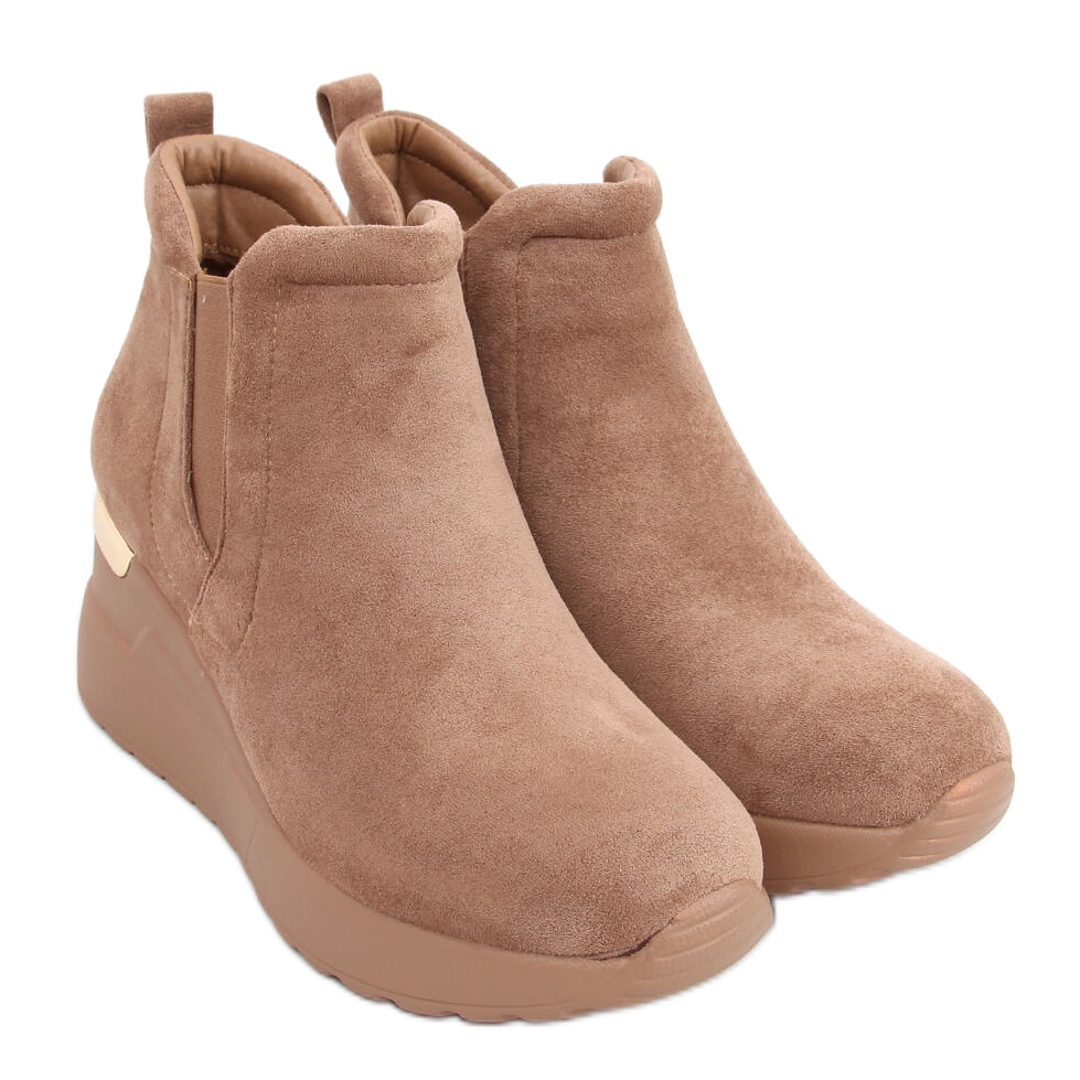 Inna marka Botki na koturnie Florens Khaki brązowe