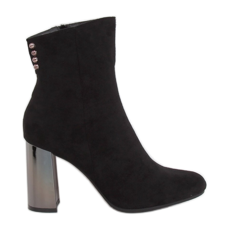 Inna marka Botki na metalicznym obcasie czarne 7661-GA Black
