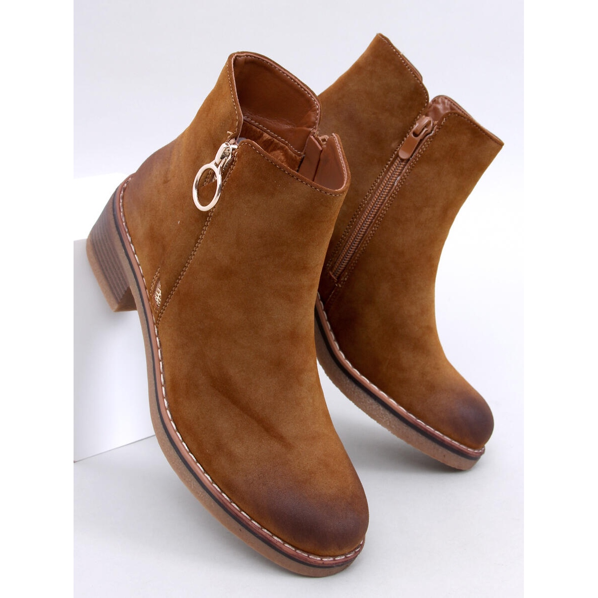 Inna marka Botki na niskim obcasie nubuk Levere Camel brązowe