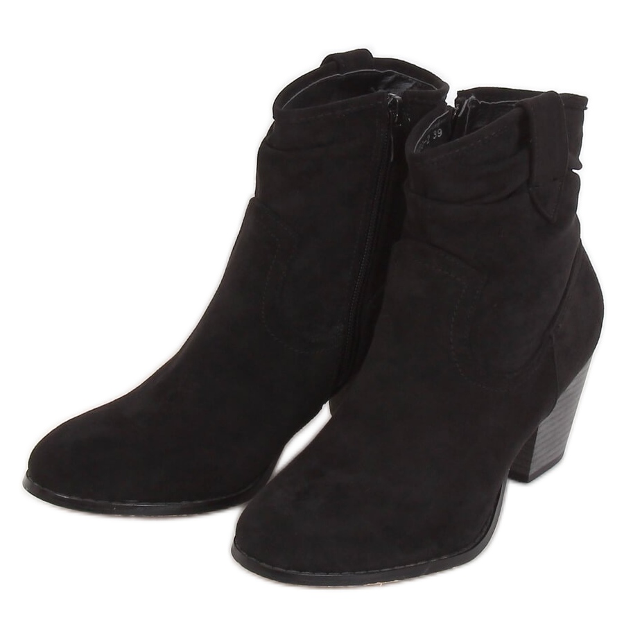 Inna marka Botki na obcasie czarne 100-986B0-2 Black
