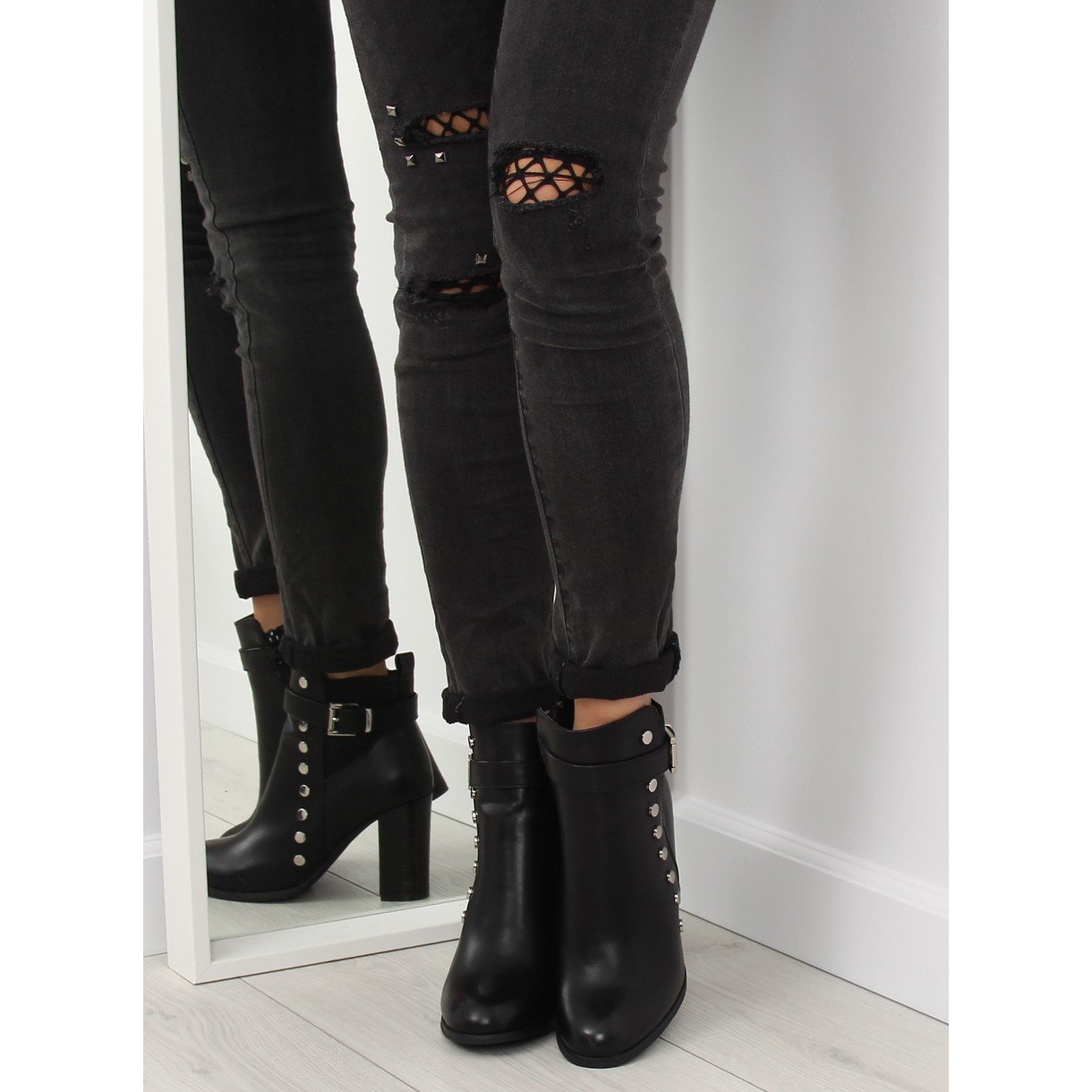 Szczegóły: Botki na obcasie licowe czarne 88073 Black