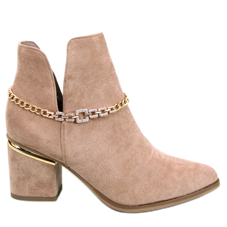 BM BM Botki na obcasie wiosenne Virginia Khaki beżowy