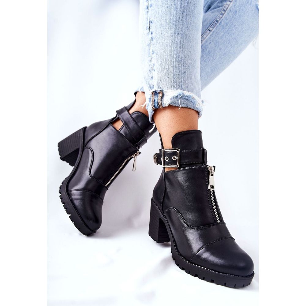 Szczegóły: PG1 Botki Na Obcasie Z Klamrą Czarne Clive