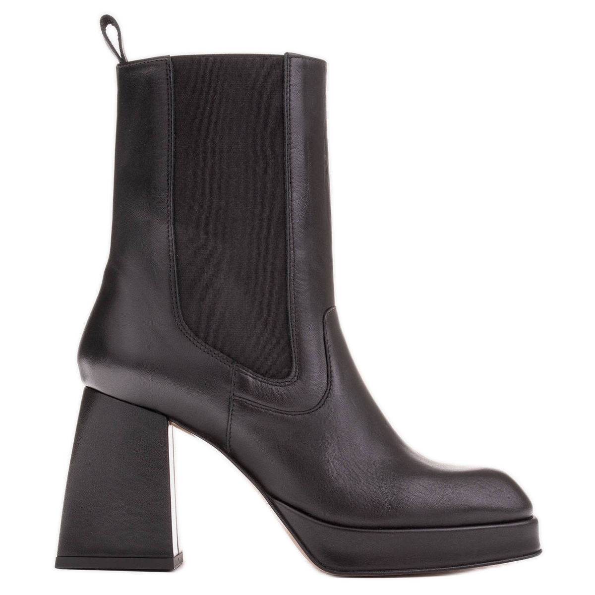 Wysokość całkowita buta wynosząca 30 cm i obcas w kształcie słupka o wysokości 9,5 cm sprawiają, że botki doskonale podkreślają sylwetkę, dodając jej lekkości. Platforma o wysokości 2 cm zapewnia stabilność, a gumowa cholewka doskonale dopasowuje się do nogi, co sprawia, że są one komfortowe przez cały dzień.