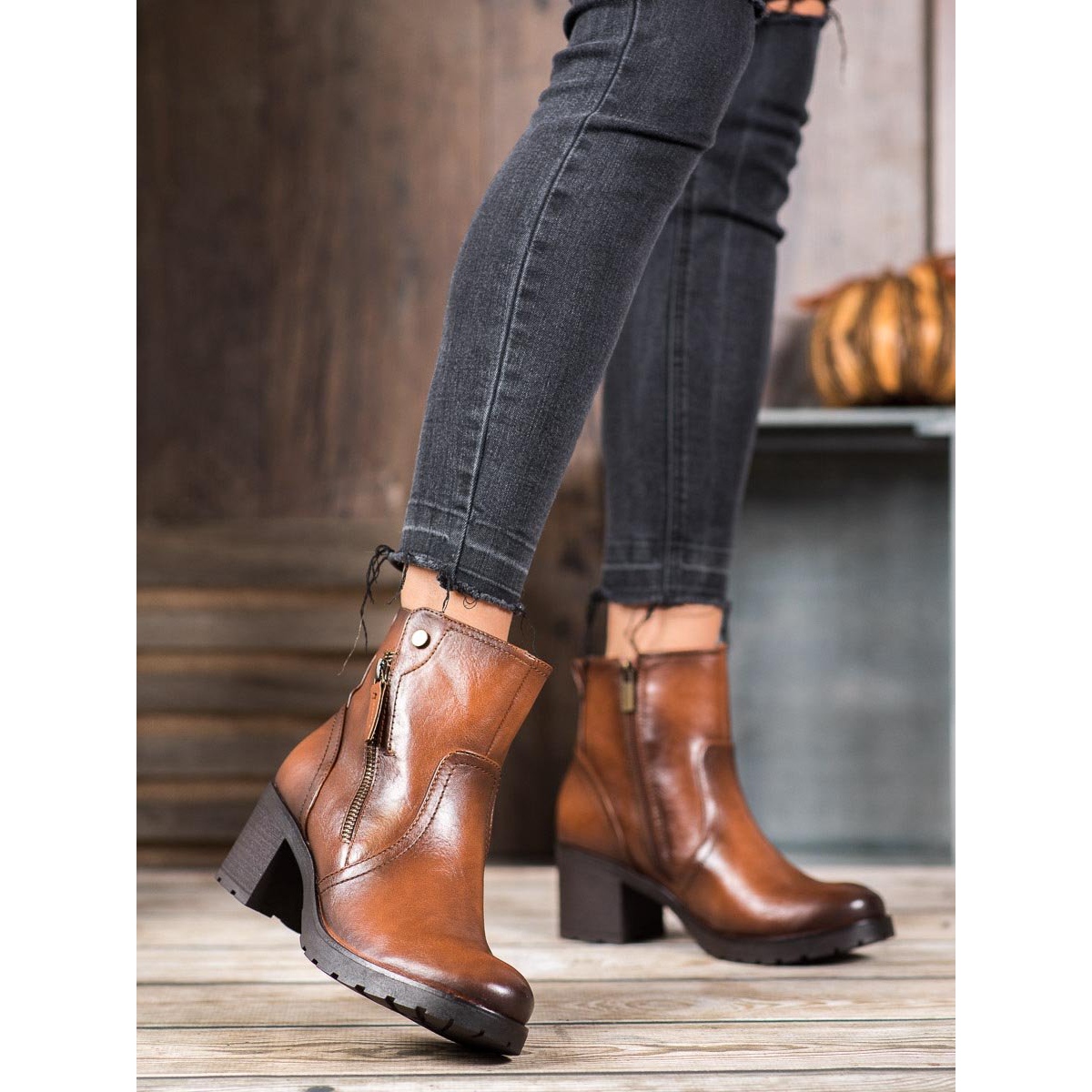 Szczegóły: SHELOVET Botki Na Suwak brązowe