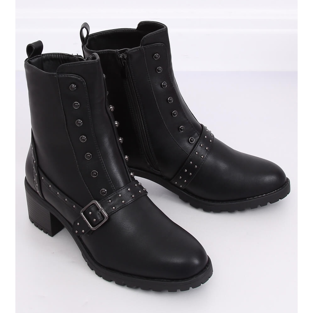 Inna marka Botki na szerokim obcasie czarne 1003-1 Black