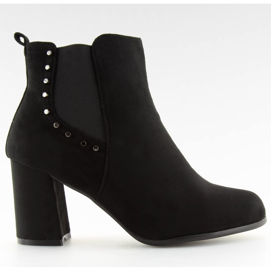 Inna marka Botki na szerokim obcasie czarne 8063 Black