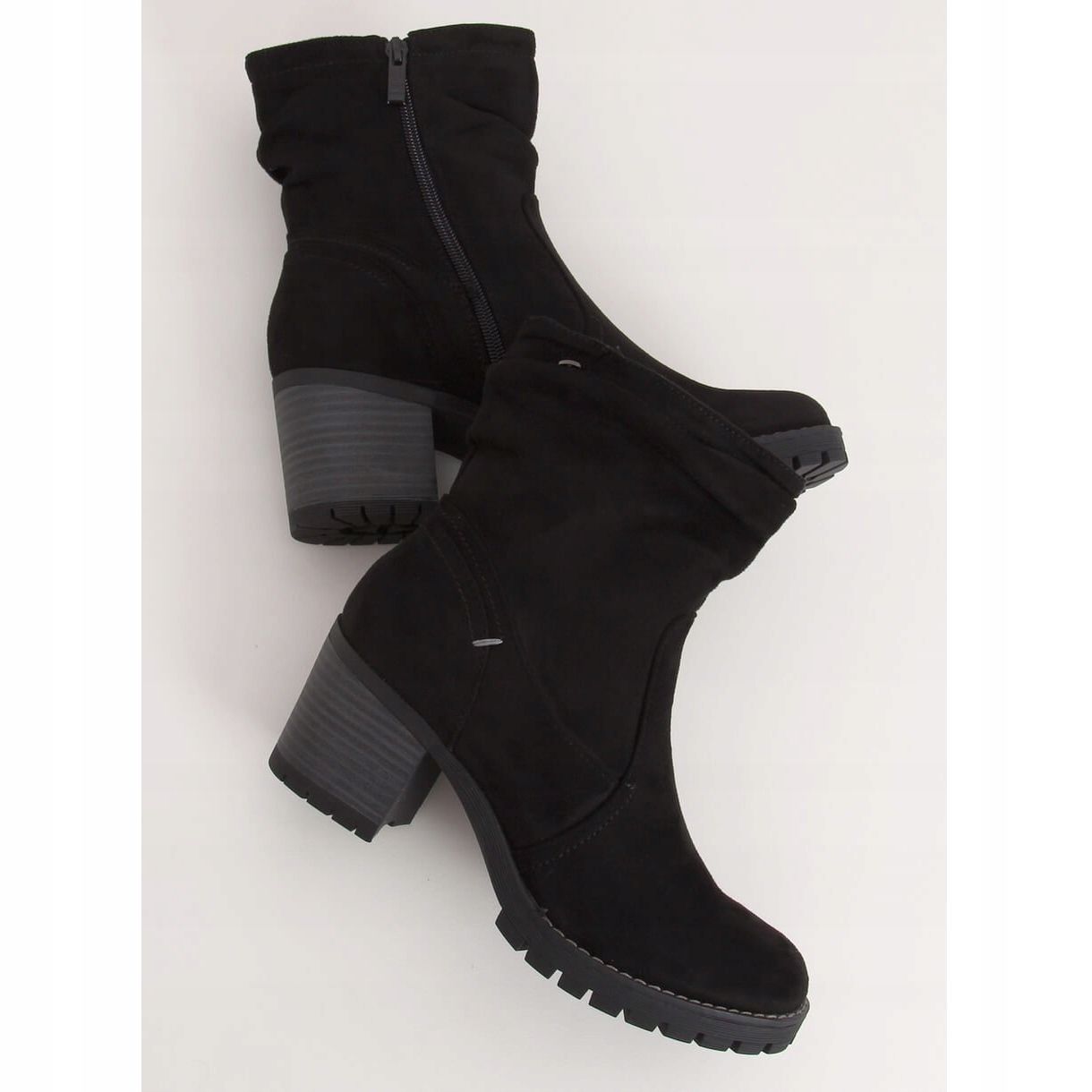 Inna marka Botki na szerokim obcasie czarne QQ-02 Black