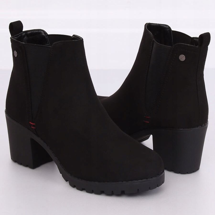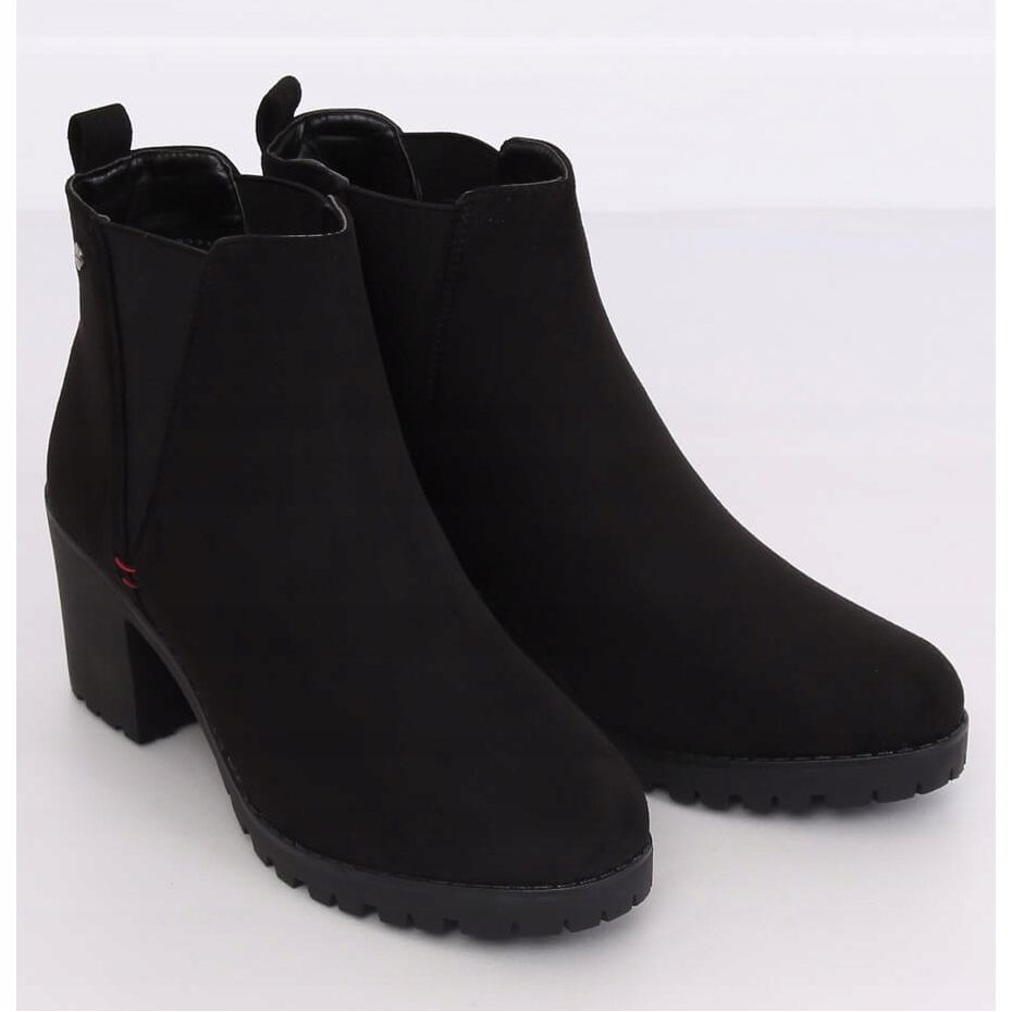 Inna marka Botki na szerokim obcasie czarne W373 Black