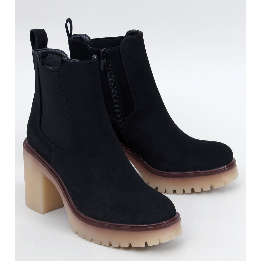Inna marka Botki na szerokim obcasie i protektorze Mattis Black czarne