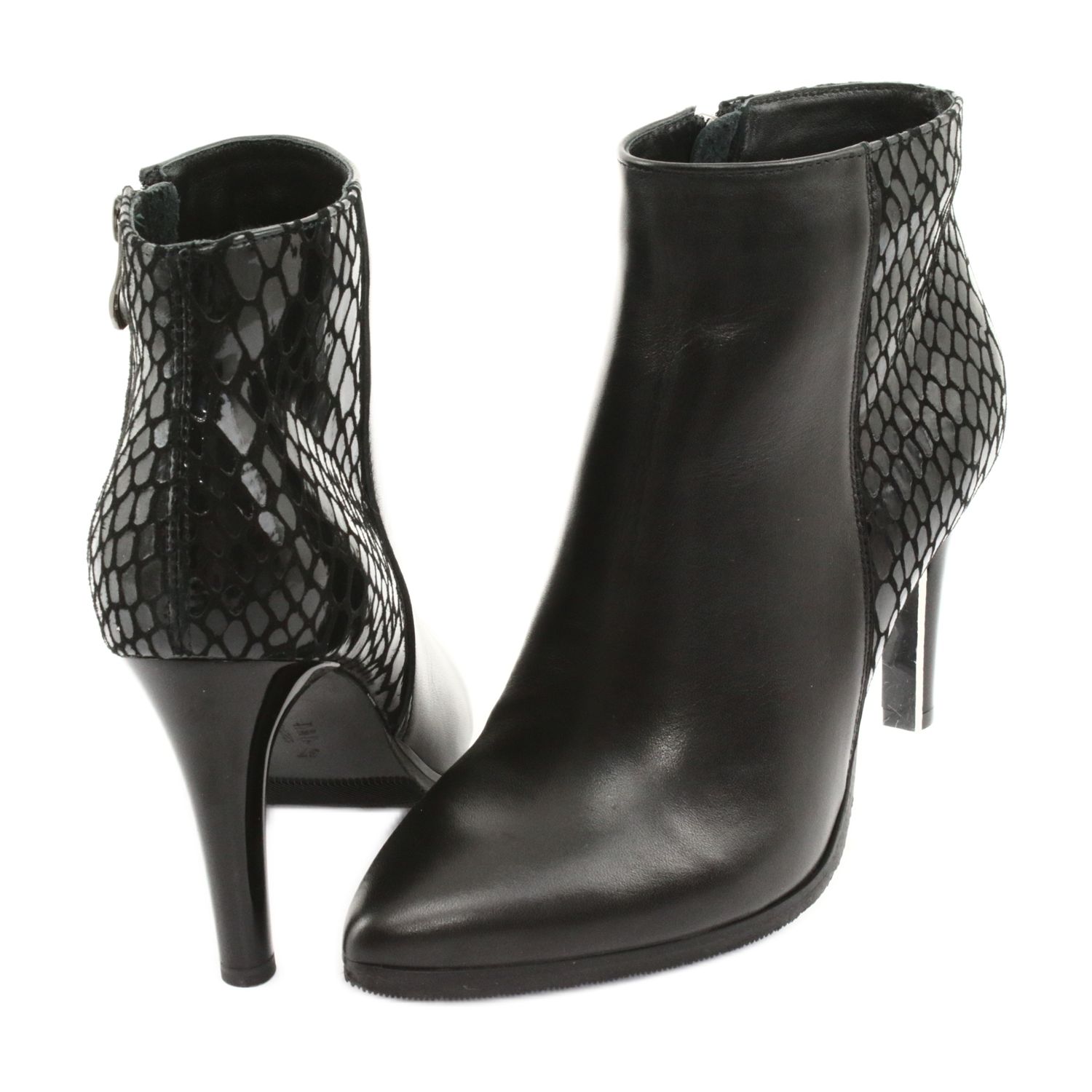 Botki na szpilce czarne Espinto to idealny wybór dla kobiet, które pragną połączyć elegancję z komfortem noszenia. Model 118 wykonany jest z wysokiej jakości skóry naturalnej licowej, co sprawia, że buty są nie tylko stylowe, ale także trwałe. Czarne, lakierowane wykończenie nadaje im wyjątkowego blasku, a ich uniwersalny kolor sprawia, że doskonale komponują się z różnorodnymi stylizacjami - zarówno na co dzień, jak i na specjalne okazje.
