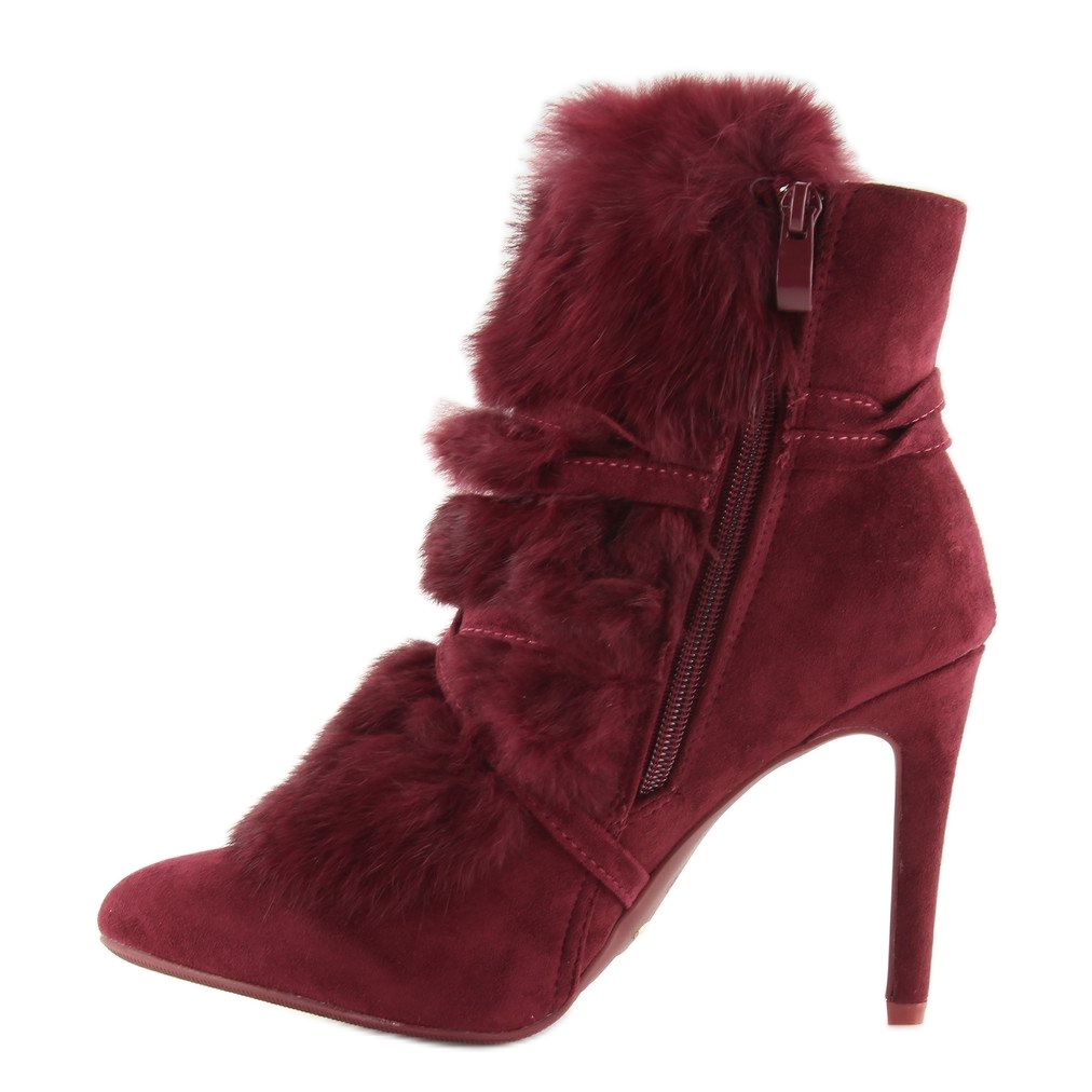 Inna marka Botki na szpilce z futrem bordowe 1319 W.RED wielokolorowe czerwone