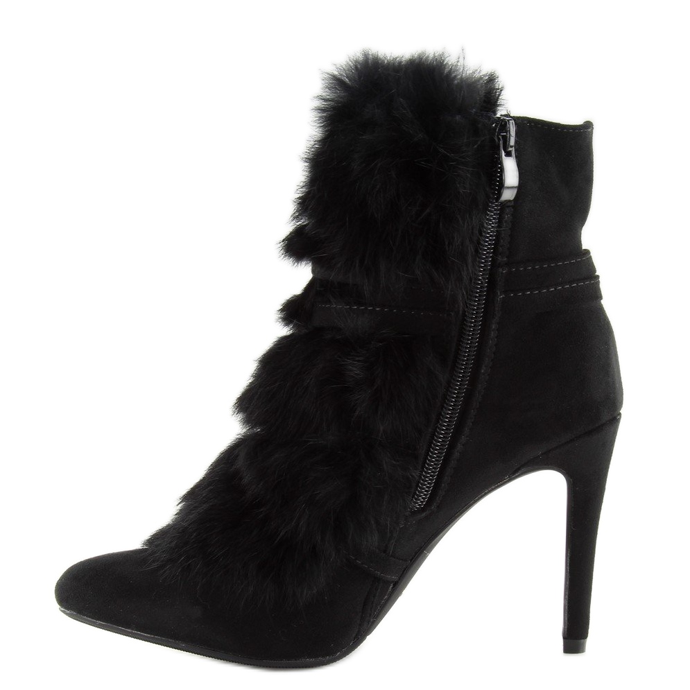 Szczegóły: Botki na szpilce z futrem czarne 1319 Black