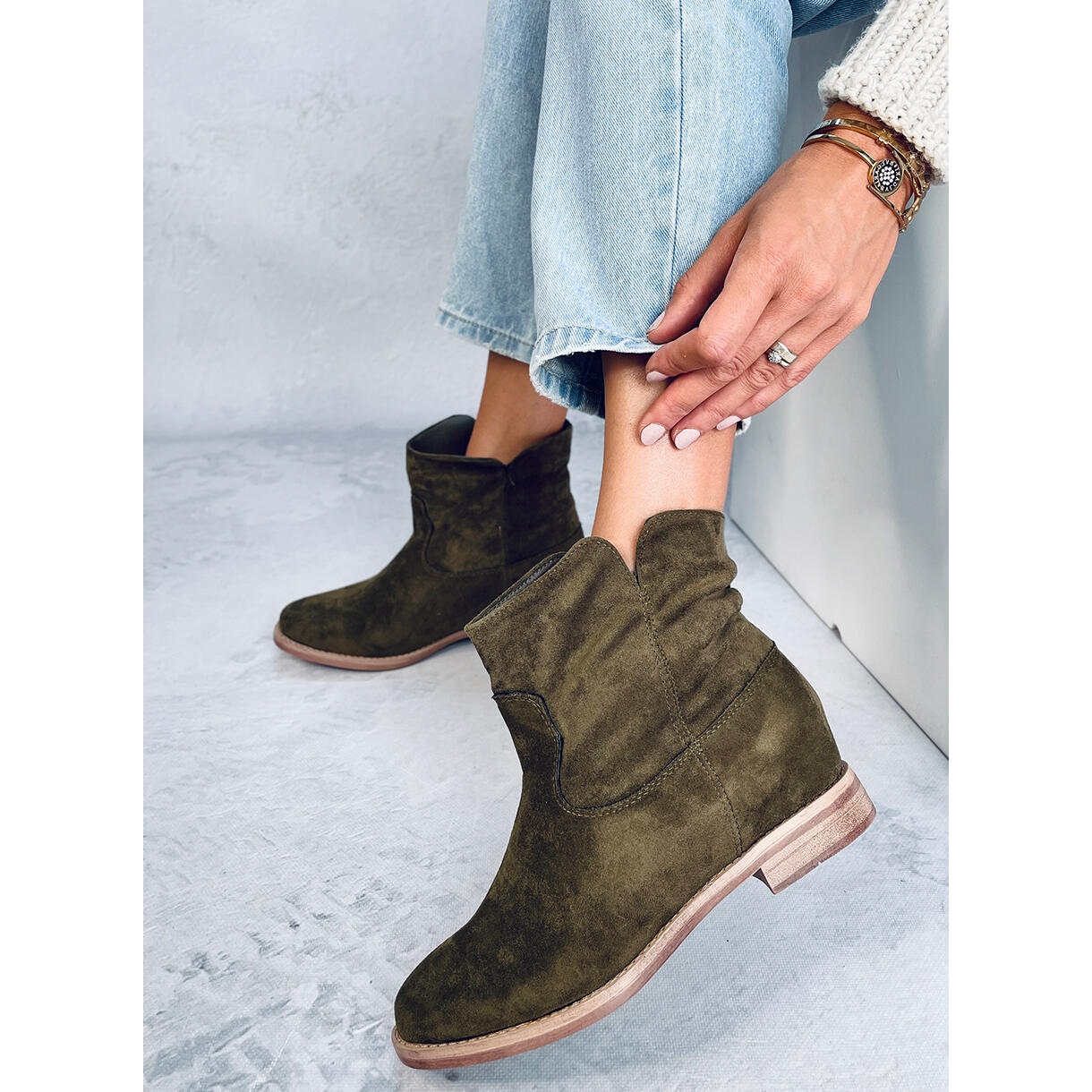 Botki na ukrytym koturnie Deer Green — zielone, eleganckie i niezwykle wygodne