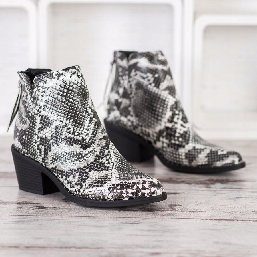 SHELOVET SHELOVET Botki Snake Print białe czarne