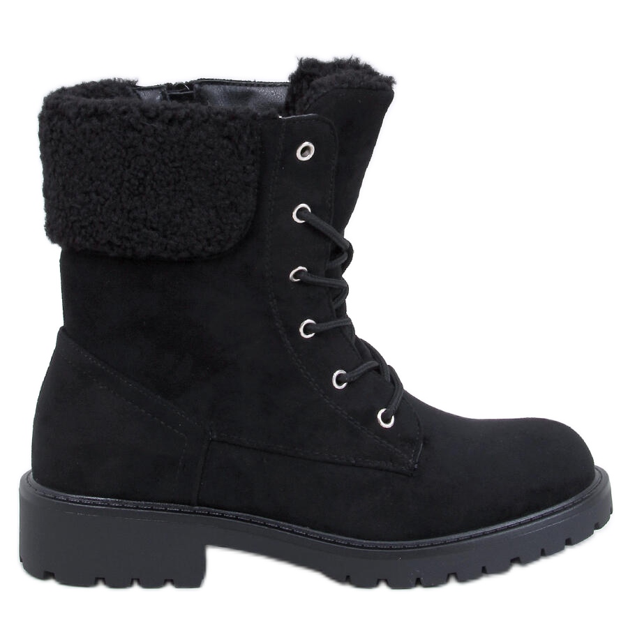 Inna marka Botki sznurowane z barankiem Barkoi Black czarne