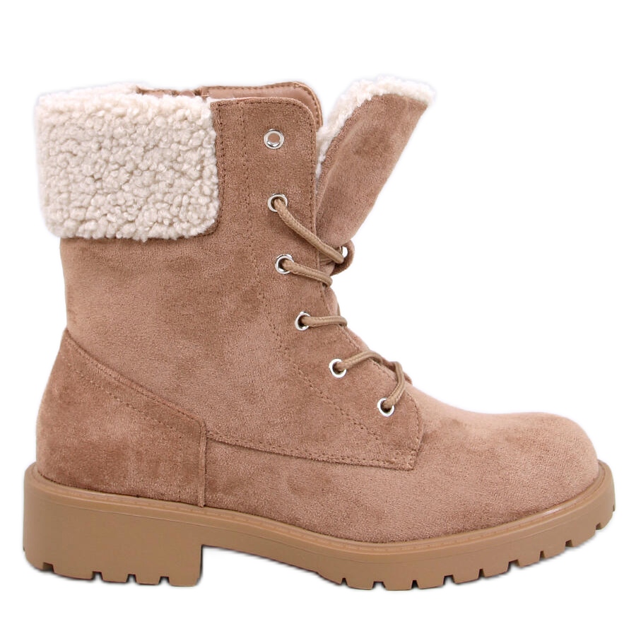 Inna marka Botki sznurowane z barankiem Barkoi Camel brązowe