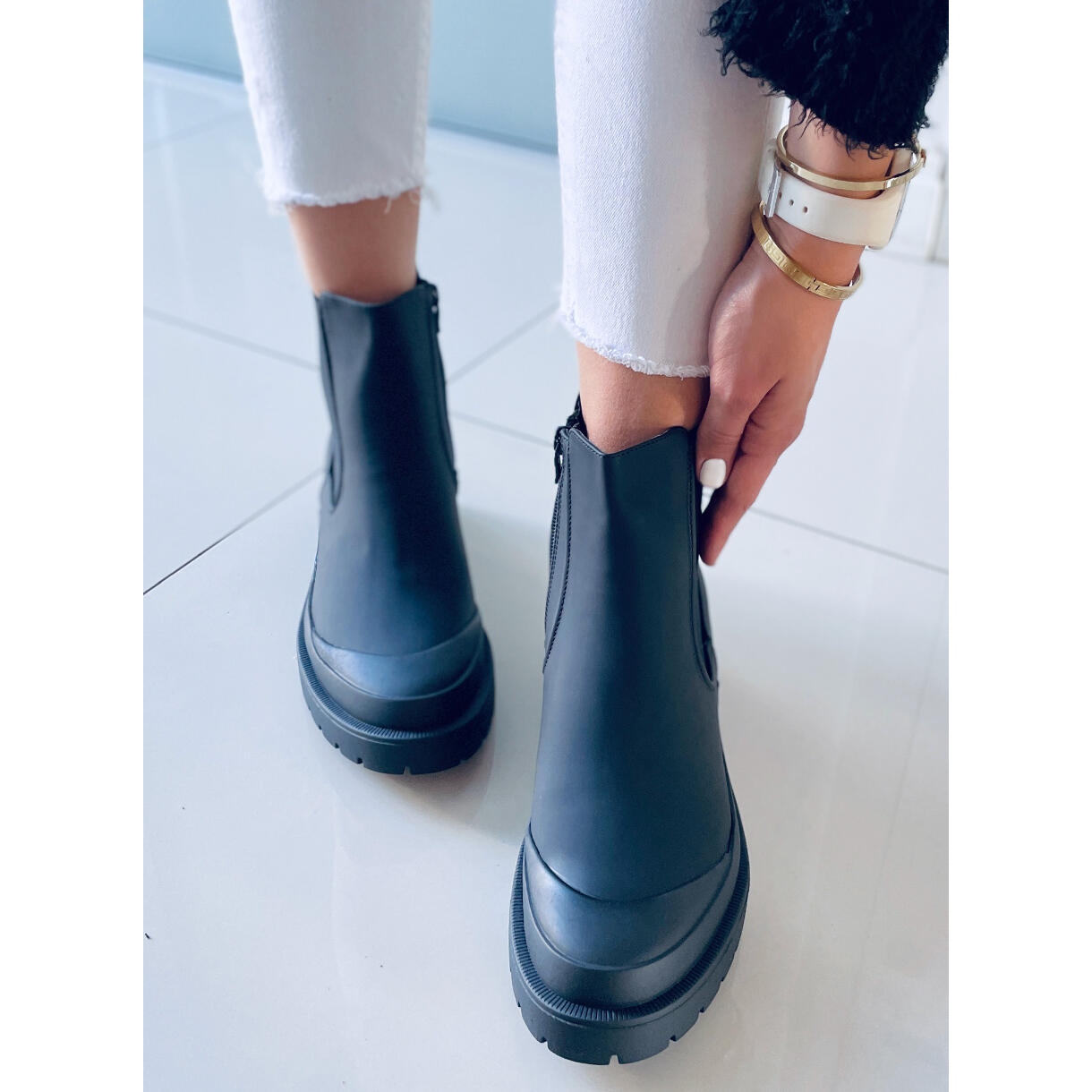 Wykonane z wysokiej jakości skóry ekologicznej, prezentują się niezwykle stylowo dzięki matowemu wykończeniu. Praktyczne zapięcie na suwak oraz elastyczna gumowa wstawka wpływają na łatwość zakładania, a okrągły nosek dodaje im subtelności. Te botki sięgają za kostkę, co sprawia, że są idealne do noszenia w chłodniejsze dni.