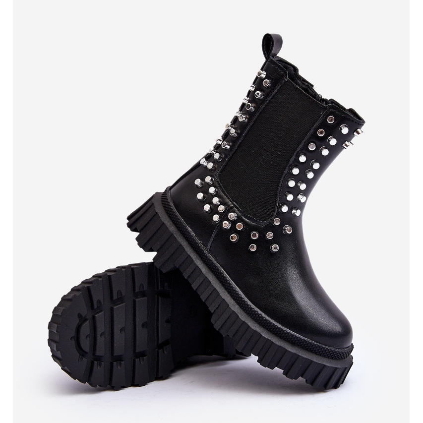 Inna marka Botki Sztyblety Dziewczęce Zdobione Dżetami Czarne Adelie