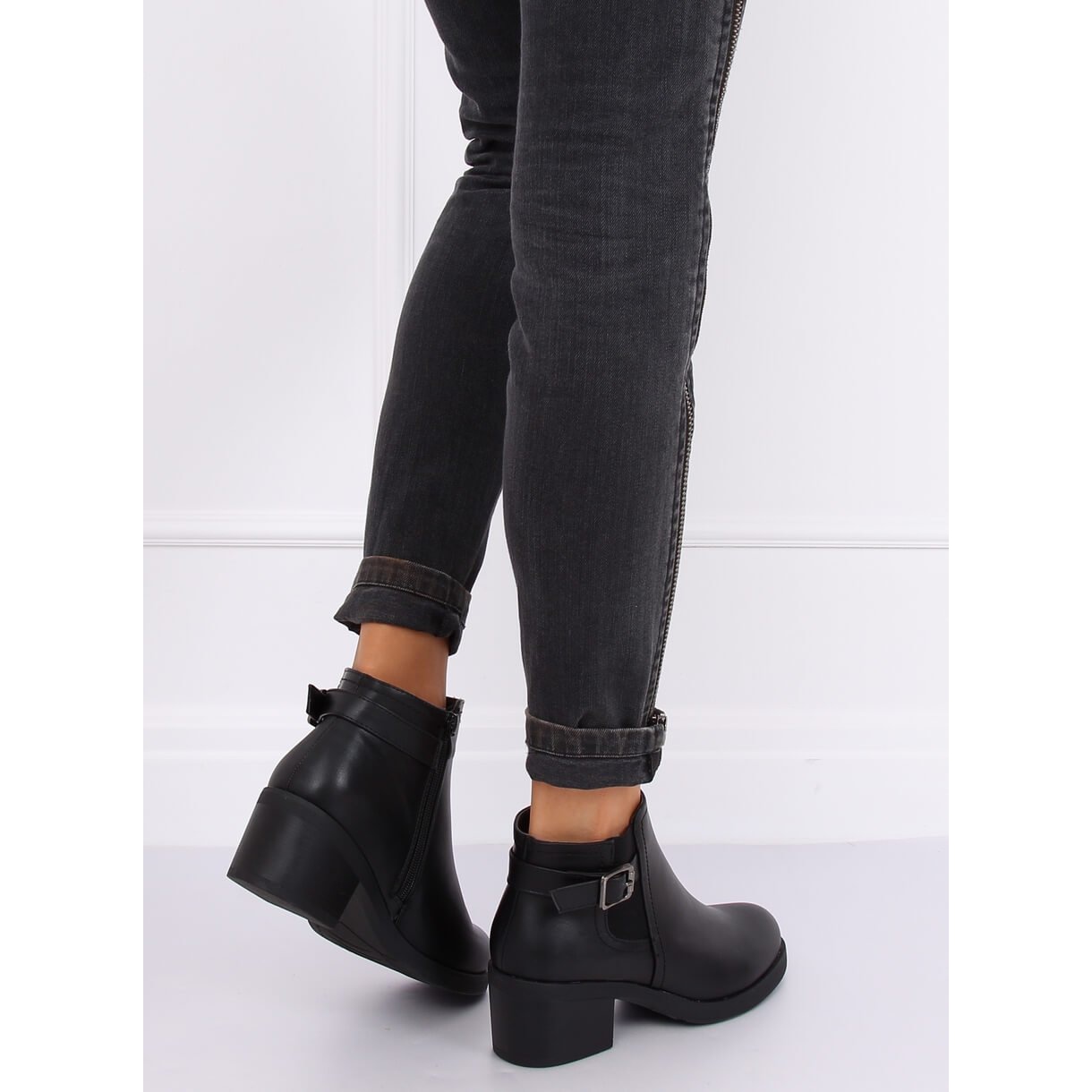 Szczegóły: Botki sztyblety na obcasie czarne B0-232 Black
