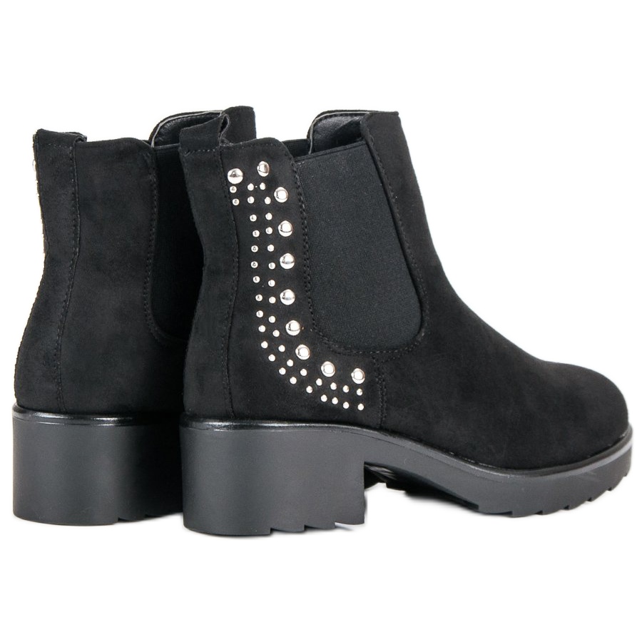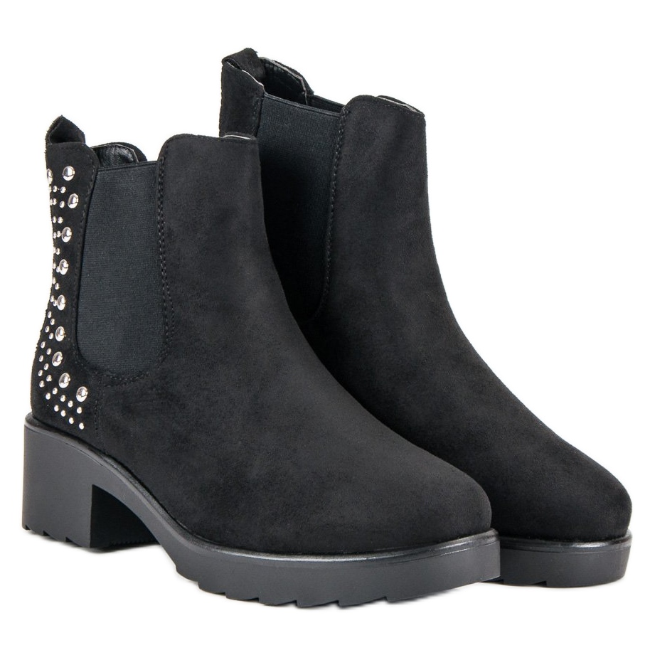 Elegancki czarny kolor sprawia, że te botki idealnie wpisują się w wiele stylizacji – zarówno casualowych, jak i bardziej formalnych. Połyskujące dżety i ćwieki dodają im kobiecego charakteru, a obcas o wysokości 5 cm sprawia, że możesz cieszyć się delikatnym uniesieniem sylwetki, nie rezygnując przy tym z wygody.