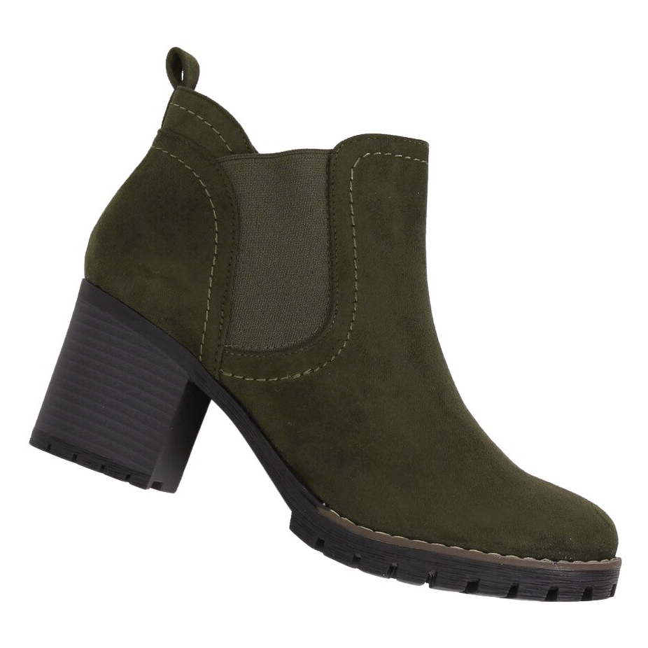 Inna marka Botki sztyblety na obcasie zielone 8B879 Green