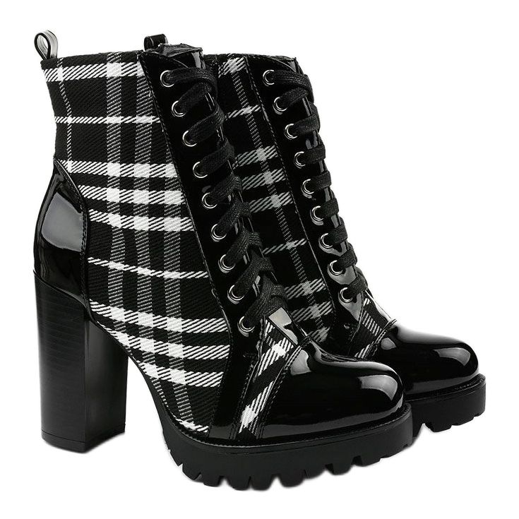 Przedstawiamy eleganckie botki w kratkę sznurowane na słupku Millersto w kolorze czarnym, które stanowią idealne dopełnienie każdej stylizacji. Charakteryzujące się nowoczesnym designem, te botki wyróżniają się cholewką wykonaną z tkaniny w biało-czarną kratkę, co nadaje im unikalny i modny wygląd. Lakierowane wstawki dodają im klasy i sprawiają, że idealnie sprawdzą się zarówno na co dzień, jak i w bardziej formalnych okolicznościach.