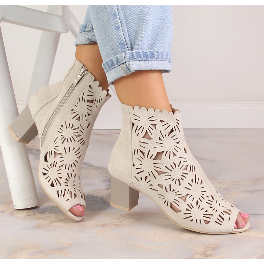 Szczegóły: M. DASZYŃSKI Botki wiosenne damskie ażurowe peep toe beżowe M.Daszyński MR1954-10 beżowy