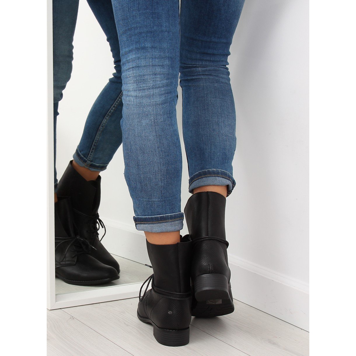 Odkryj wyjątkowy styl i komfort dzięki czarnym botkom workery 16006-53A Black! Te sznurowane botki damskie wyróżniają się prostym, a zarazem eleganckim fasonem, który idealnie sprawdzi się na co dzień. Szeroka cholewka i płaska podeszwa zapewniają wygodę noszenia, co sprawia, że tak szybko ich nie zdejmiesz.