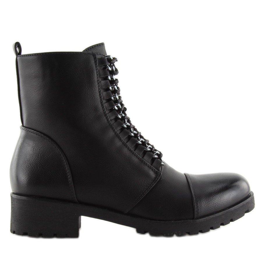 Botki workery czarne A89626 to doskonały wybór dla kobiet, które cenią sobie zarówno modę, jak i wygodę. Te stylowe botki na płaskiej podeszwie z protektorem gwarantują komfort podczas codziennych aktywności. Ich charakterystyczne ozdobne sznurowanie, wzbogacone łańcuszkowymi oczkami, nadaje im niepowtarzalnego stylu. Dodatkowo, opalizujące sznurówki przyciągają wzrok i podkreślają oryginalność obuwia.