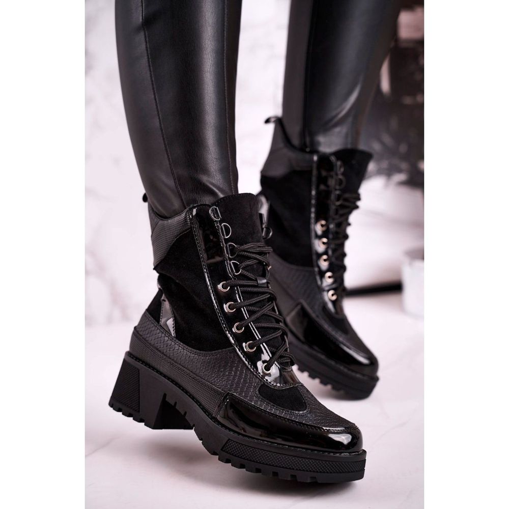 Inna marka Botki Workery Ocieplane Czarne Print Zwierzęcy Helena