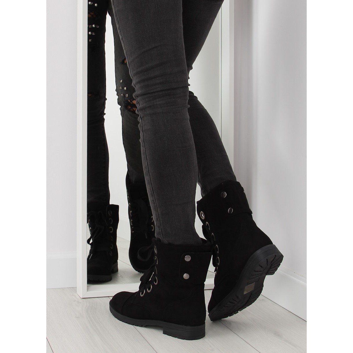 Szczegóły: Botki workery sznurowanie czarne 8901 Black