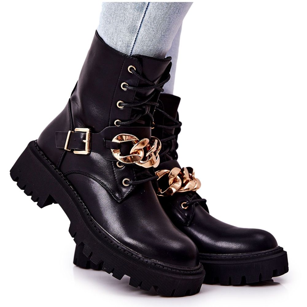Szczegóły: WS1 Botki Workery Z Łańcuchem Czarne Molisa złoty