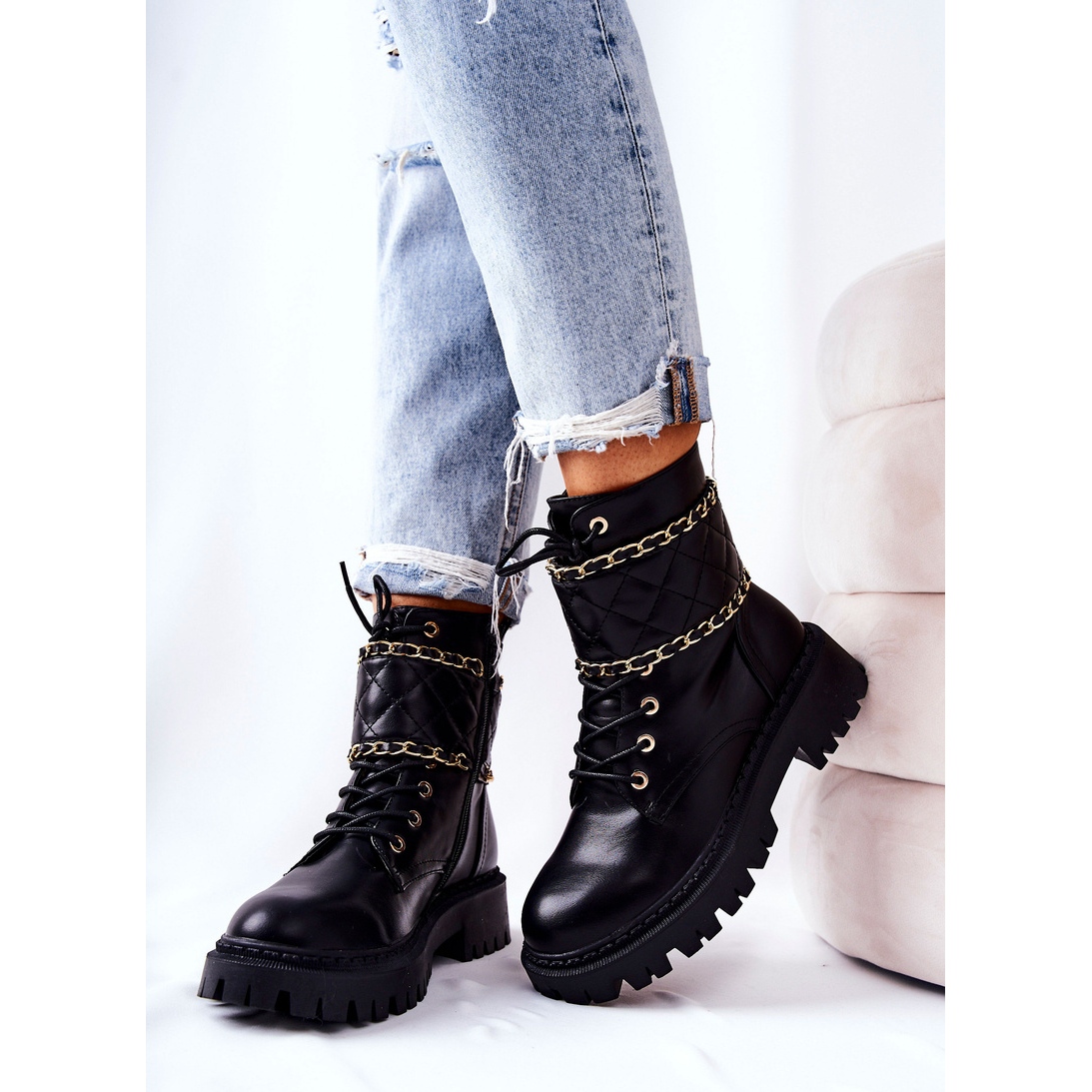 Inna marka Botki Workery Z Łańcuszkiem Czarne Caleanor