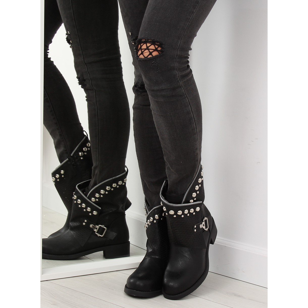 Inna marka Botki z ażurową cholewką czarne 7166-PA black