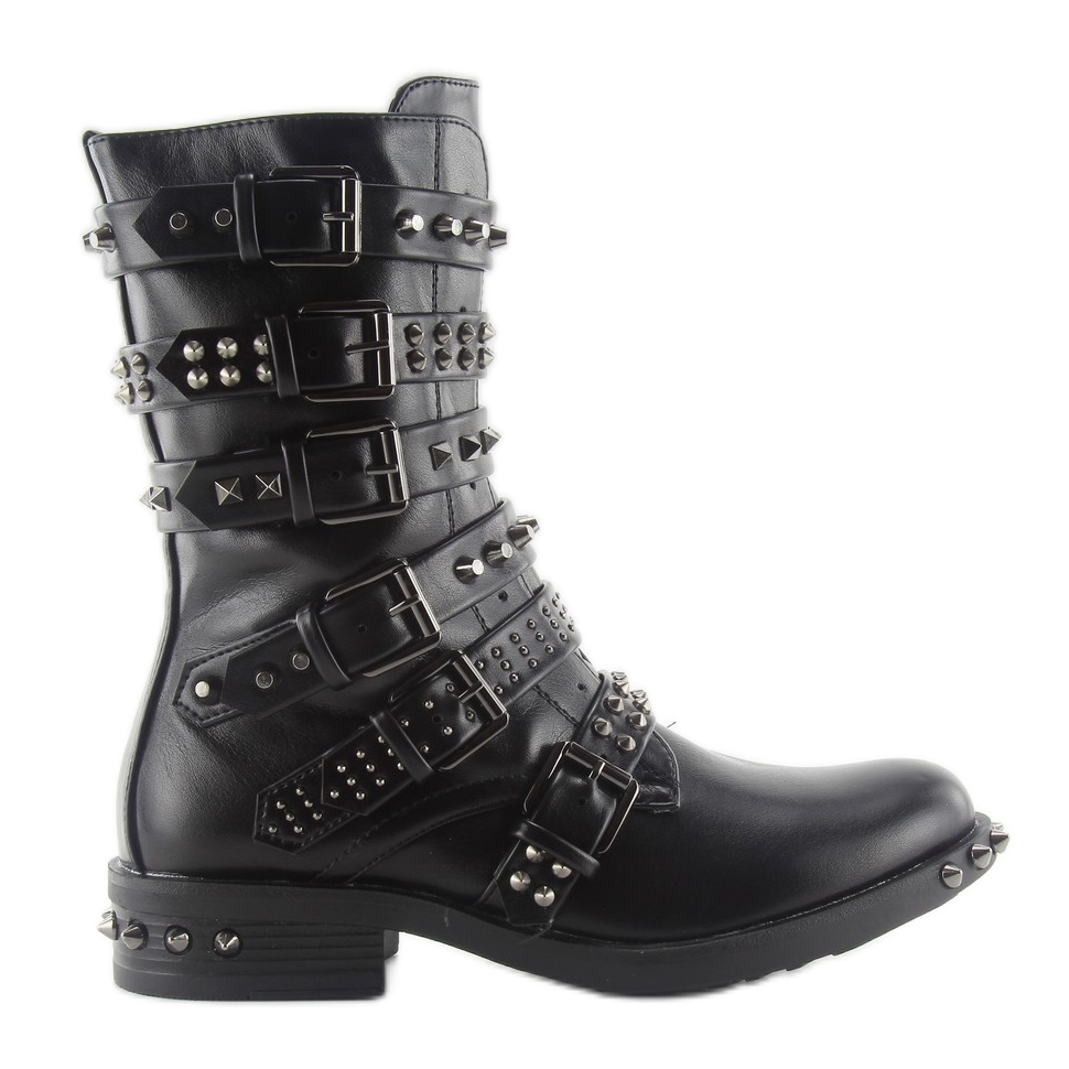 Szczegóły: Botki z ćwiekami heavy look ae73p black czarne