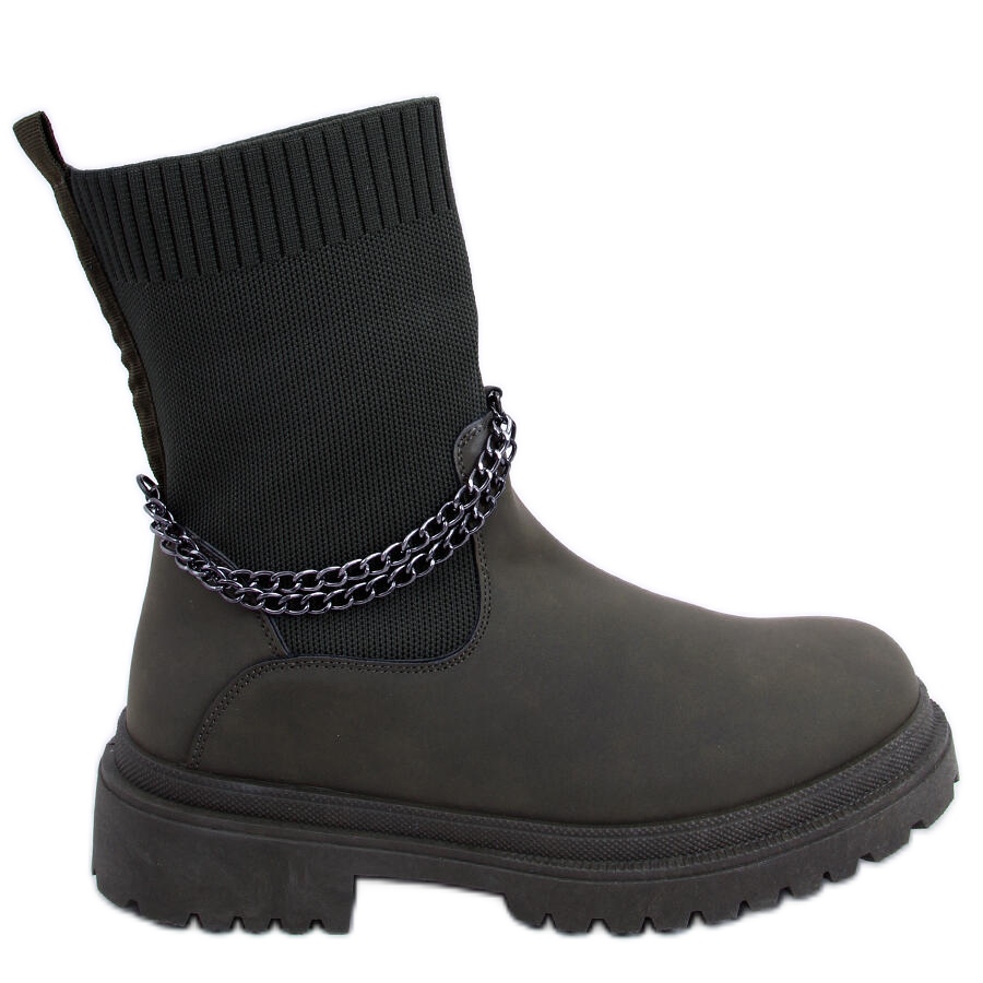 Botki Jesse Blackish Green — zielone, z elastyczną cholewką i łańcuszkowym akcentem. Idealne na co dzień dla miłośniczek modnego, wygodnego obuwia na grubej podeszwie.