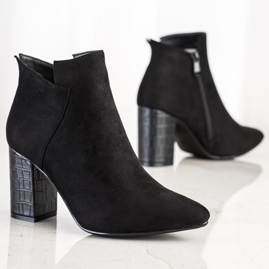 Botki wykonane są z wysokiej jakości ekologicznej skóry zamszowej, co zapewnia nie tylko estetykę, ale także komfort noszenia. Ich czarny kolor sprawia, że będą pasować do różnych stylizacji, niezależnie od okazji. Usztywniony zapiętek oraz ocieplenie gwarantują wygodę oraz odpowiednią stabilność podczas chodzenia.