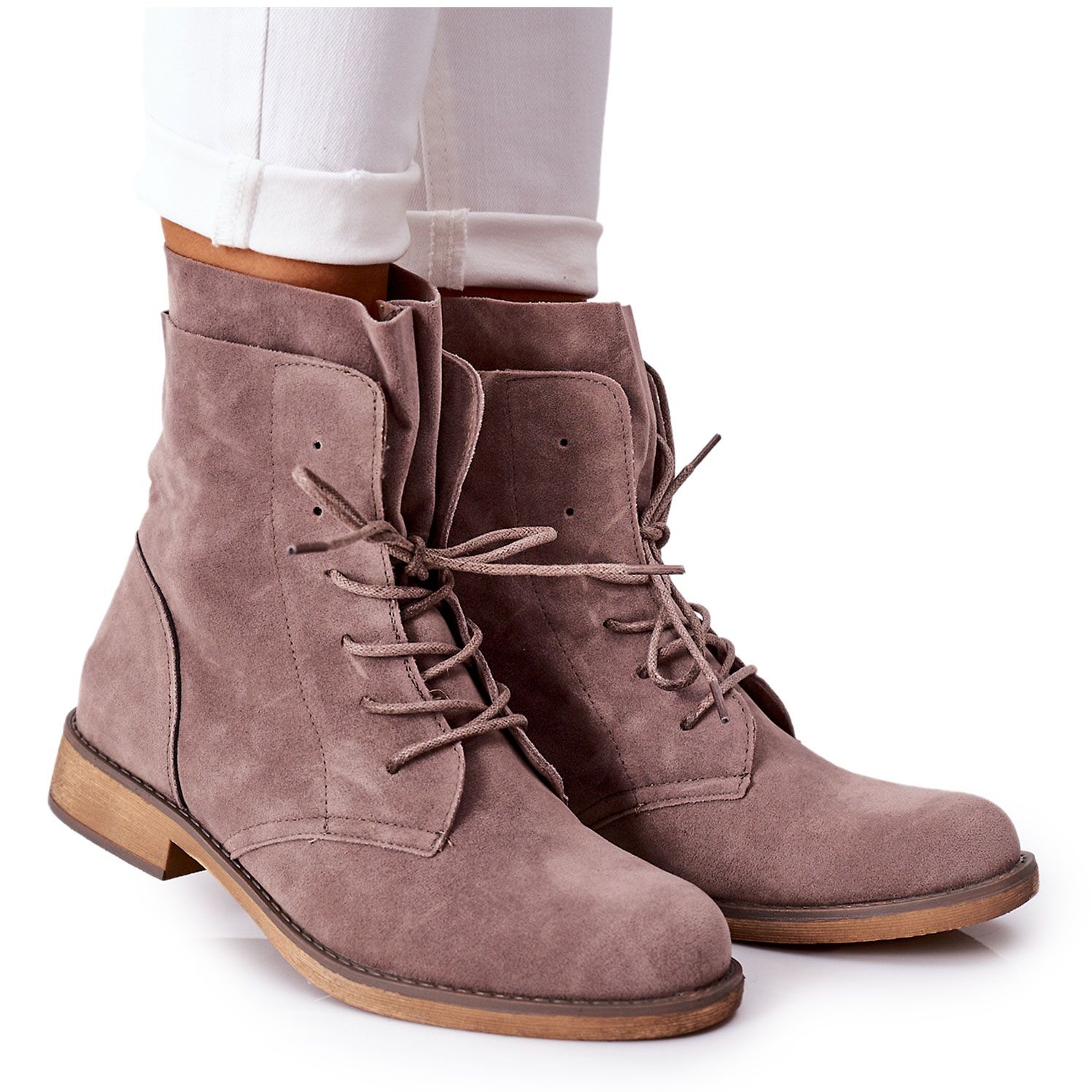 PS1 PS1 Botki Z Podwójną Cholewką Taupe Violetta szare