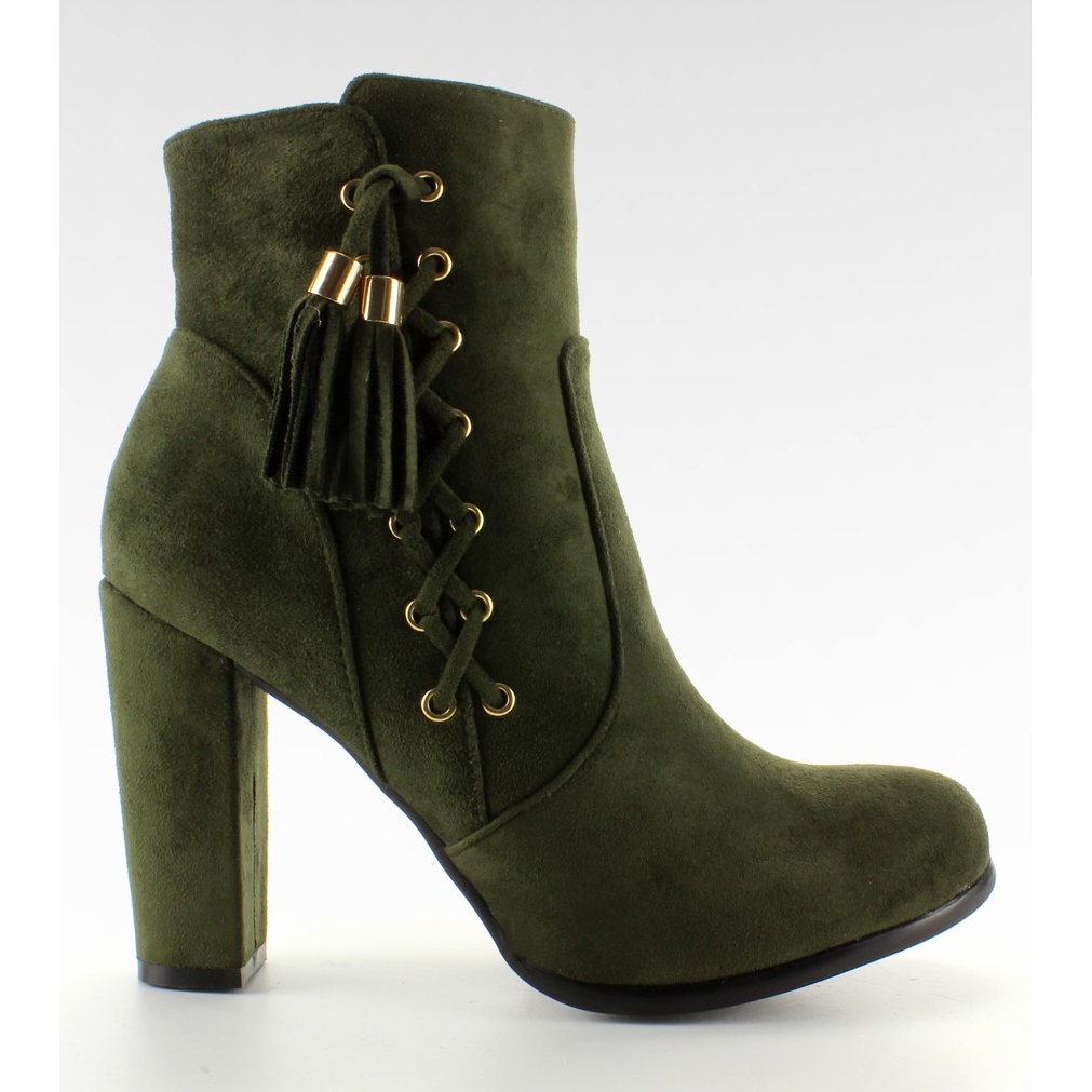 Inna marka Botki zamsz ozdobnie sznurowane Green zielone