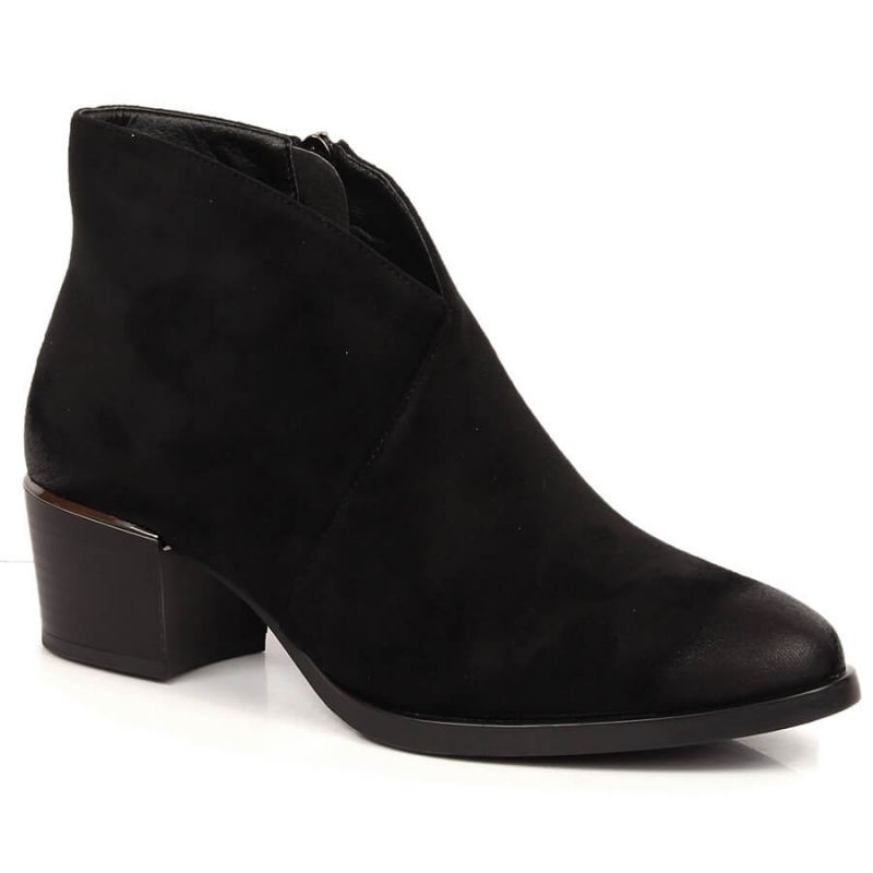 Szczegóły: Botki zamszowe na obcasie ocieplane Vinceza W JAN151C czarne