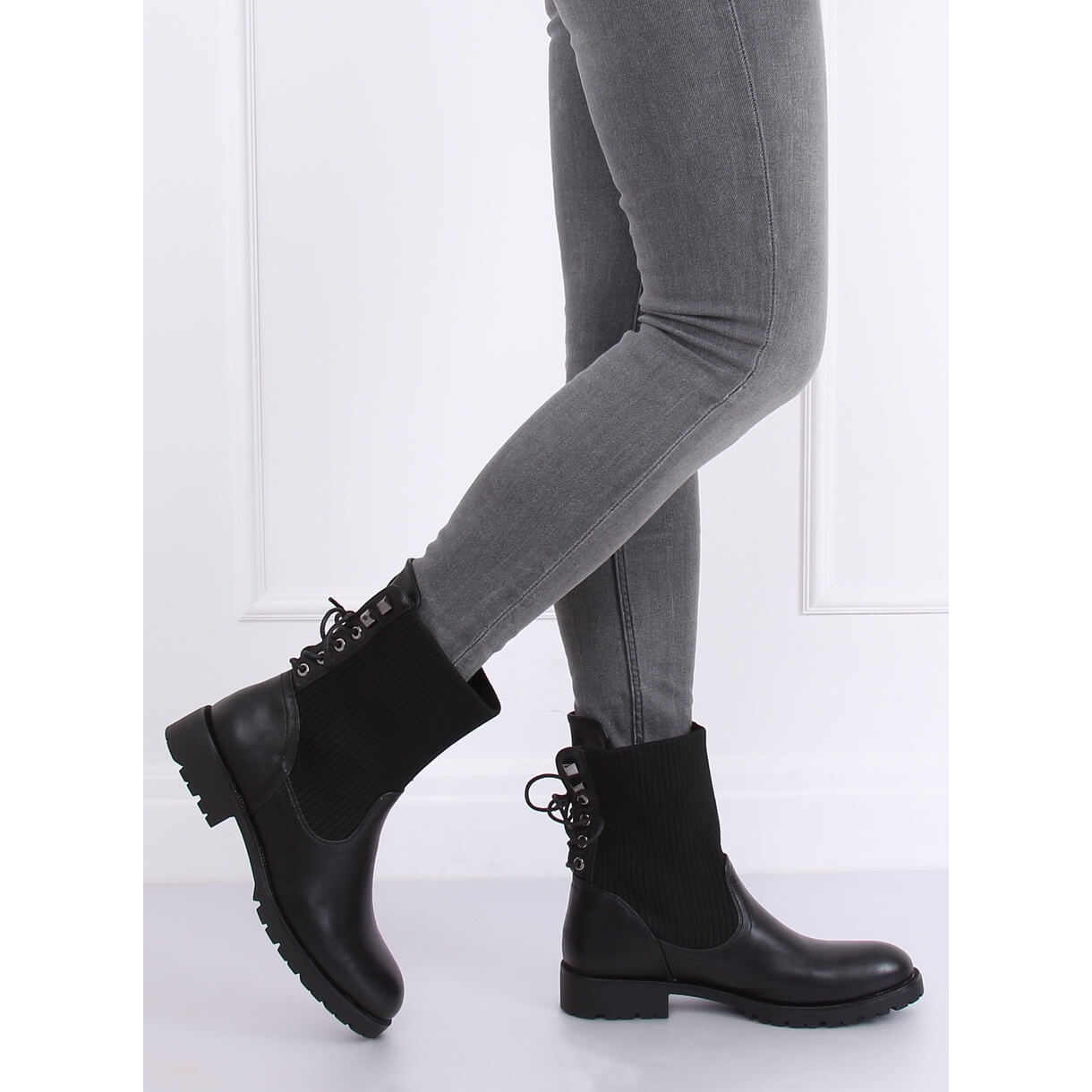 Inna marka Botki ze skarpetkową cholewką czarne 7969-PA Black