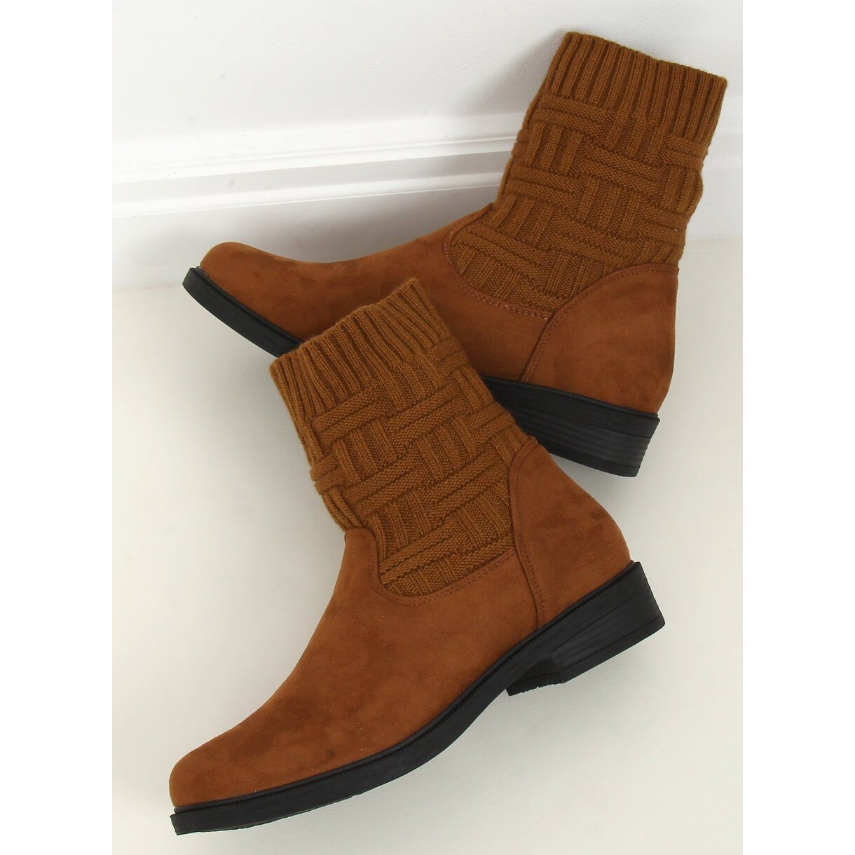 Inna marka Botki ze swetrową cholewką camel E2100 Camel brązowe
